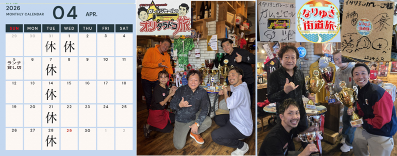 今年で7年目を越えたばかりの新米のお店ですがこの場所で今から30年前にオープンしたカフェ(コーピーバンク)からそば店(堤屋)そして、イタリアンガレージと引き継がれ地元や観光客の皆様、遠方からお寄りいただいている皆様のおかげでスタッフ一同何とか地に足を付けて頑張っております。